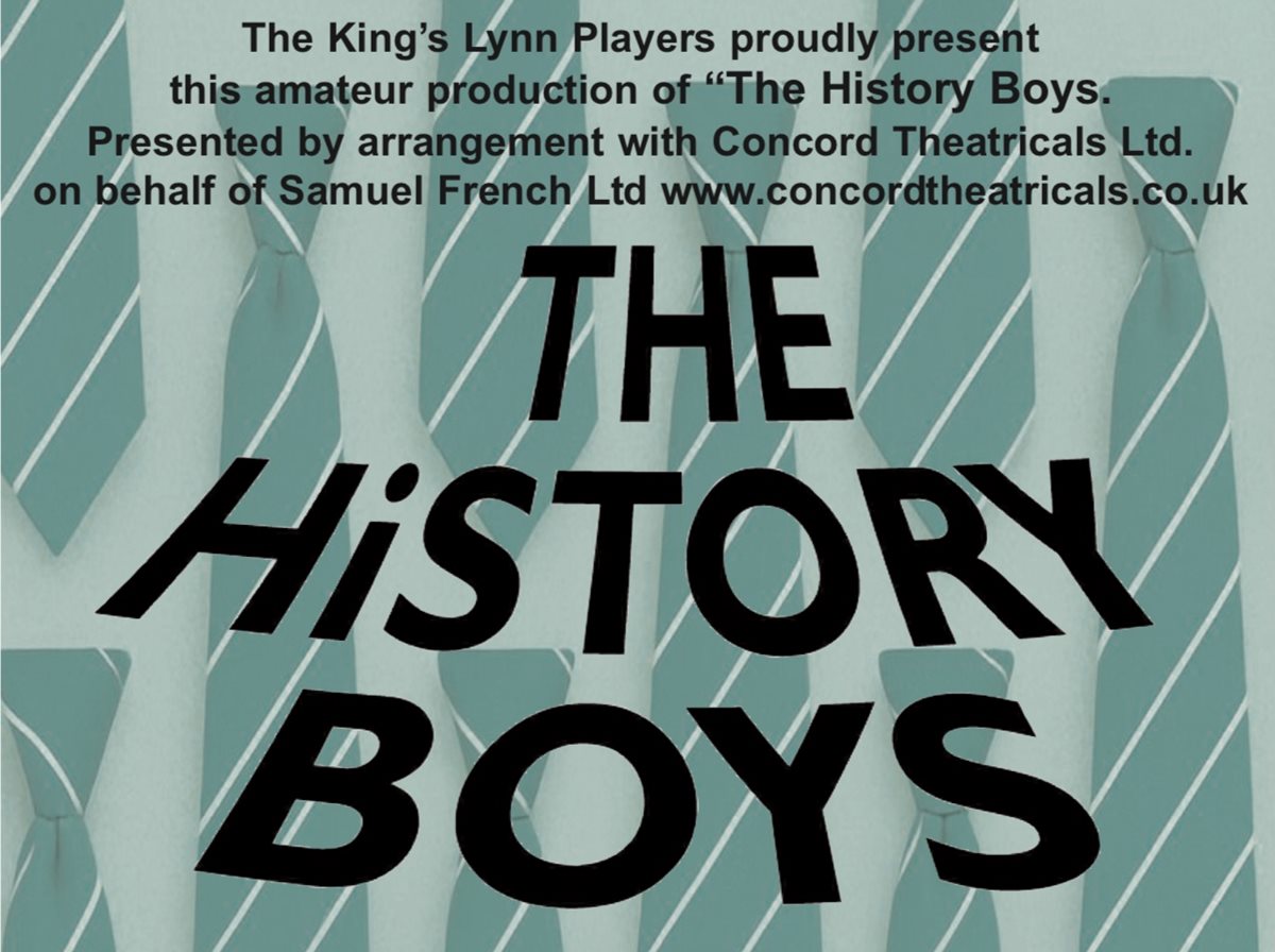 The King’s Lynn Players proudly present Alan Bennett’s moving and disquieting but equally brilliantly funny play, The History Boys. Staff room rivalry, and the anarchy of adolescence provoke insistent questions about history and how to teach it and about education and its purpose. Set in the 1980s in a state school where the headmaster is keen to get more pupils into Oxford and Cambridge to compete with other schools and raise its profile. It follows eight bright boys who stay on for another year to sit scholarship exams taught by Hector who refuses to be corseted to the English curriculum, and new teacher Irwin, who is determined to get them through the exams at all cost.